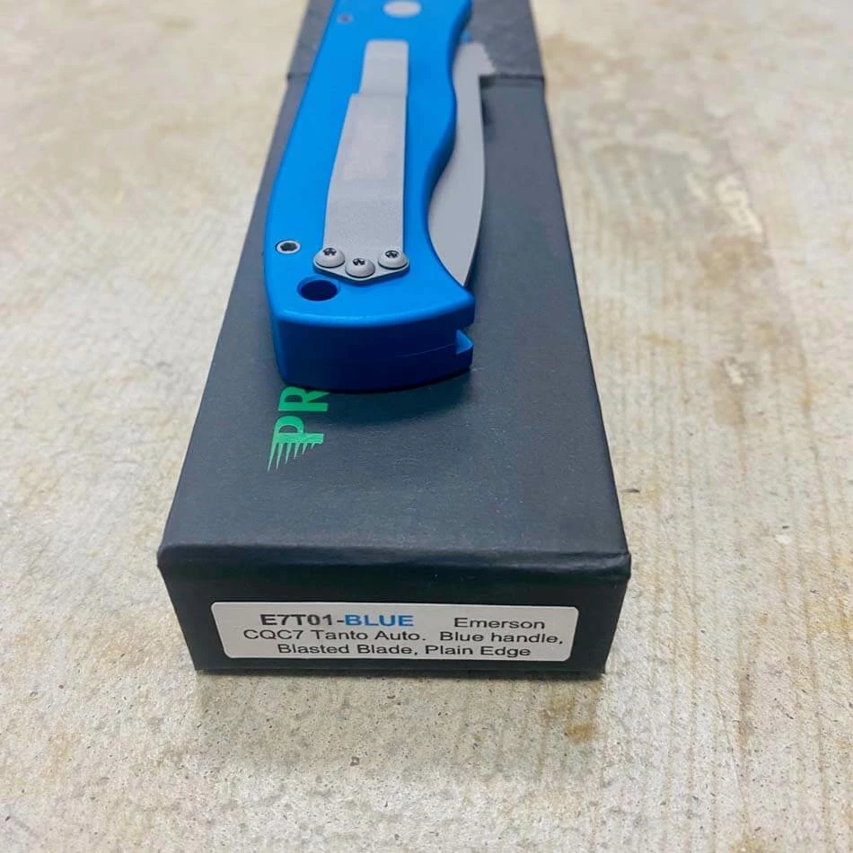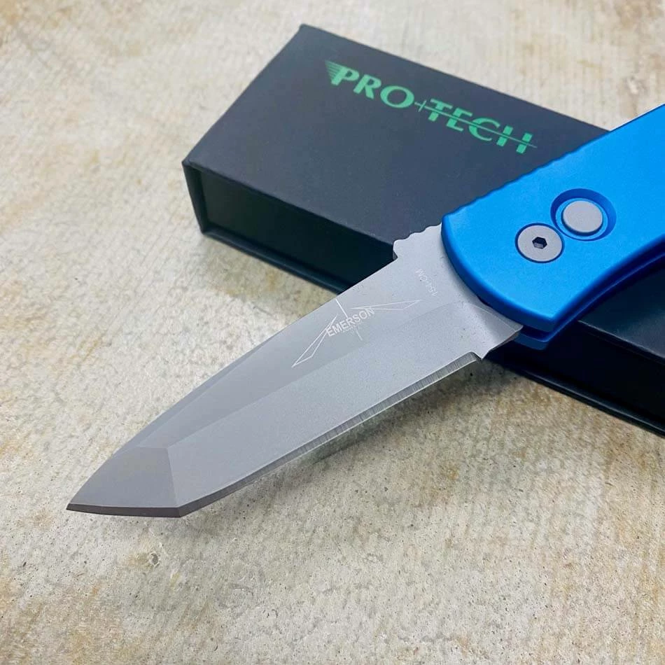 The EMERSON E7T, possibly the most famous tactical knife design on the planet proudly produced to exact Emerson specs with Pro-Tech’s superior coil spring action mechanism! This Pro-Tech produced automatic version of the CQC7 features a 3.25” chisel tanto blade, super ergonomics and the hard use tactical design experience of Mr. Ernest Emerson. One of our most popular knife models!