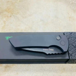Protech LG403-LH Short Bladed Rockeye SBR featuring solid black hard coat anodized handles, black hardware, black DLC coated deep carry clip