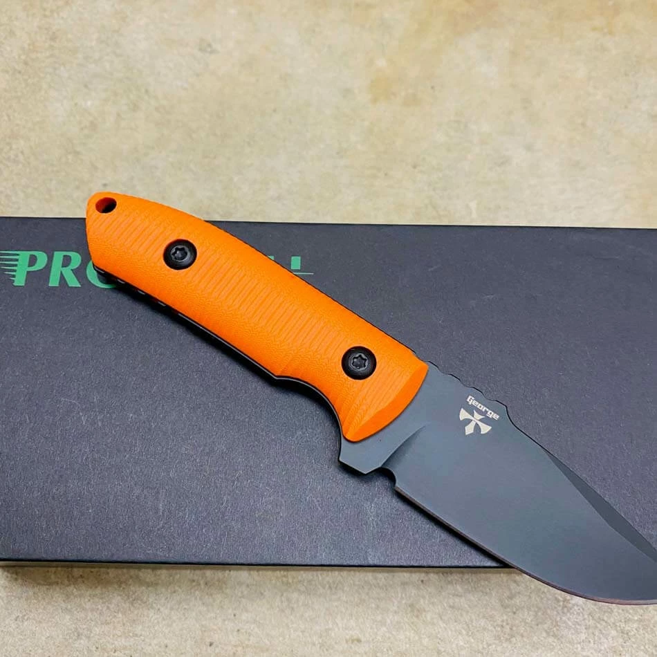 SBR Fixed blade knife, small bladed rockeye orange 3D g-10 handle, black S35Vn blade, Kydex sheath