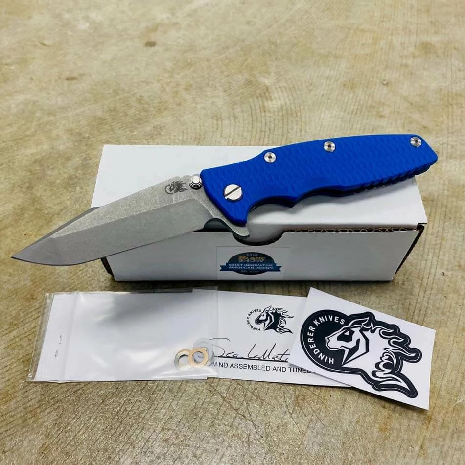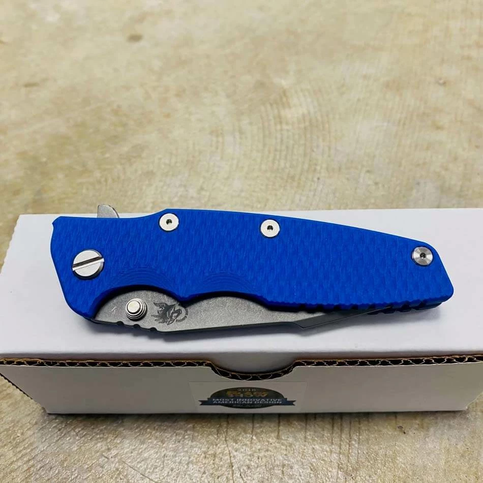 Speaking of the pivot, we make our own 17-4PH Stainless steel pivots on a new state of the art CNC turning center thus guarantying precise accuracy. The pivot is a ¼” in barrel diameter with a 3/8″ head. The pivot is drilled and tapped completely through and is mated with an In house designed screw. This system makes for an incredibly strong pivot that is easy to adjust in the field. The Eklise handle shape is designed to be very ergonomic and comfortable in a wide variety of user positions. Not everyone’s hands are the same size, and also grip varies greatly, so the ergonomic handles design is great fit for all users. The textured pattern used on the handle scale is extremely grippy but does not ‘bite’ the hand during use. The 3D texture is designed to flow liquids (such as sweat, oils, blood, etc.) away from your skin and into the valleys of the texture. The lockside is precision CNC manufactured from 6AL4V titanium featuring our Hinderer Lockbar Stabilizer. The knife can be set up for either tip up or tip down carry. The non-lock side has a .050″ titanium liner with a G-10 handle scale. These high strength materials combined with the full titanium liner add strength and rigidity. The handle scales can be easily changed by the end user if another color is desired. The standard finish on all Eklipse folders is a highly durable tumbled/stonewash that will stand up to hard use in all environments. The handle construction is an open back design utilizing huge standoffs. The standoffs are designed to add superior strength for lateral crushing of the handle case while still allowing the blade to nestle into the handle without touching the standoffs. This gives the knife the same strength as a solid back folder while offering the ease of cleaning due to the open design