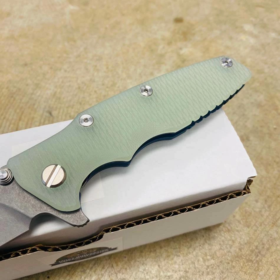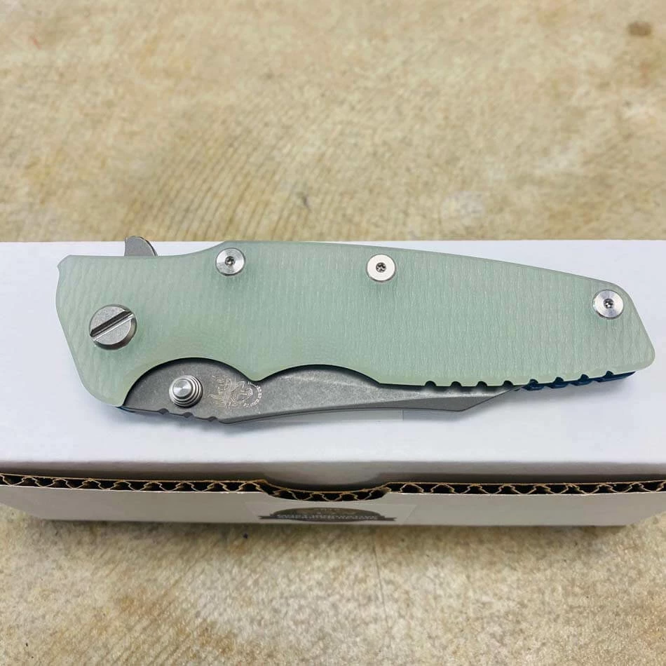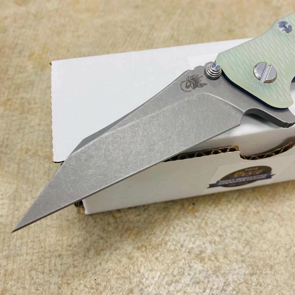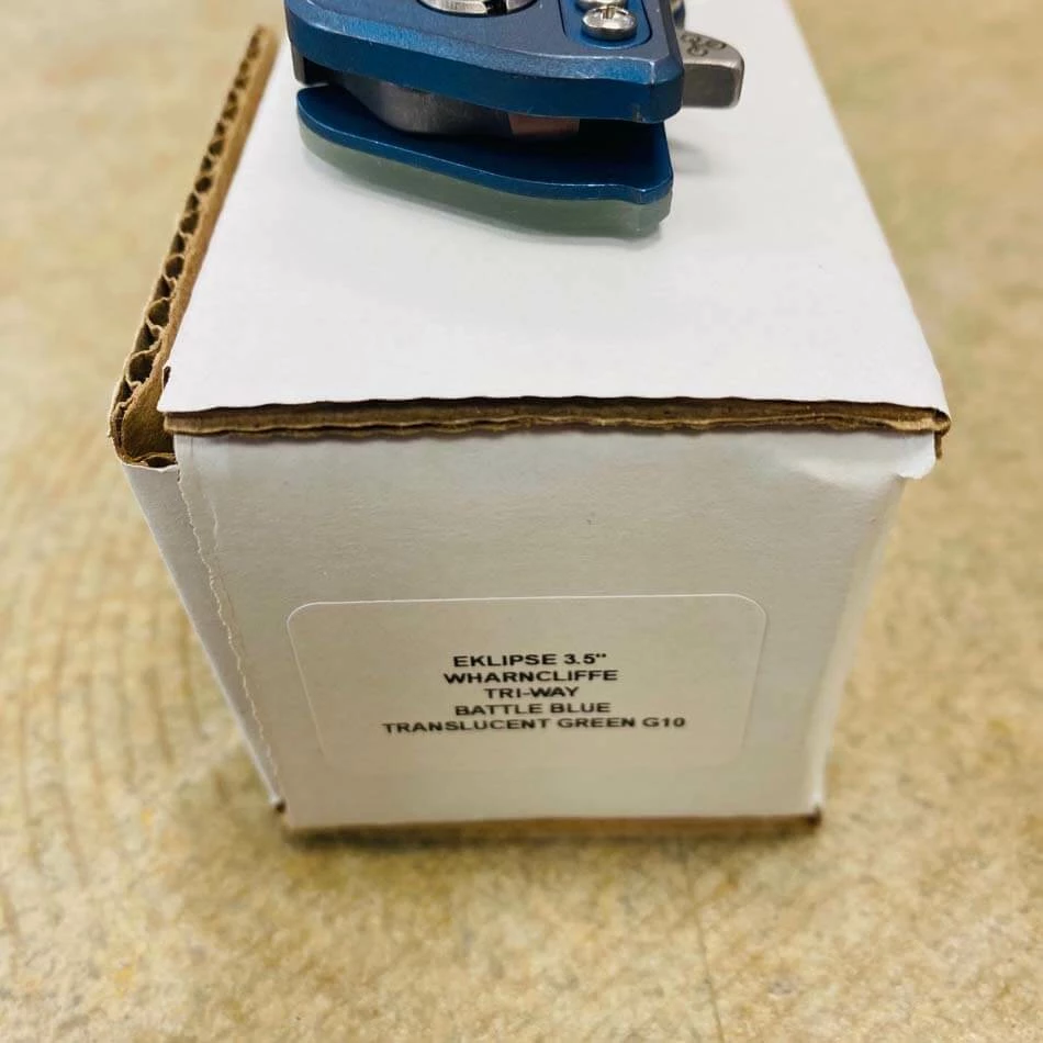 Be the first to review “Rick Hinderer Eklipse 3.5″ Wharncliffe CPM-20CV, Tri-Way, Battle Blue, Translucent Green G10 Folding Knife” Cancel reply