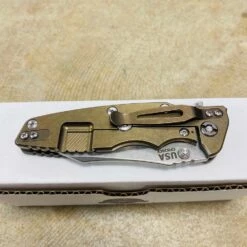 Rick Hinderer XM-18 3.5″ Slicer Tri-Way Battle Bronze Finish OD Green G10 Working Finish Blade Knife