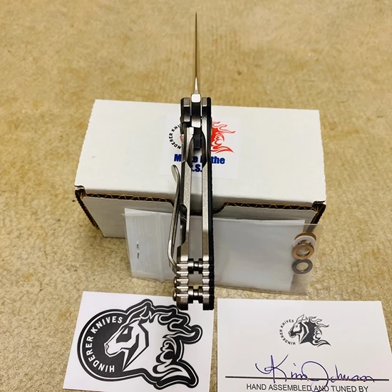 Half tracks were conceived as a vehicle that could go where regular wheeled cars could not and yet not be as large as a tank. The Hinderer Knives Half Track is aptly named. The Hinderer Half Track is actually smaller in overall length than a XM-18 3 inch model. HOWEVER, due to the handle shape and ergonomics, it has a totally different feel in the hand. If you have wanted a smaller Hinderer for EDC, but thought the 3 inch XM-18 felt a bit small in the hand, the Half Track is perfect. It’s handle design allows you to get a great grip on the knife and still do “real” work. The Half Track is a clean design that is easy to carry and has a hidden open/stop pin in the blade that contacts the frame under the front of the knife.