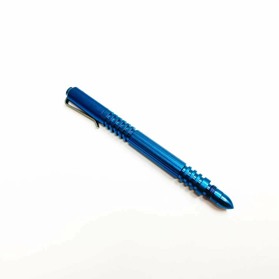 The Investigator Pen- Building on the success of the Extreme Duty pen and listening to customers who desired a smaller more easily carried heavy duty pen, I designed the Investigator Pen. I carried through the same design elements such as the deep grooves that run perpendicular to the length of the pen body as the Extreme Duty pen and even the very first heavy use pen, the Modular Pen. You will feel the overall toughness and quality as soon as you grip the pen body. You will notice the deep cut threads that hold the cap on either end of the body ensuring the toughest connection. I use Space Pen refills which are the best and toughest hard use ink pen refills on the market. This pen is also made in a modular concept, meaning we offer many different end cap options that each user may choose from. We offer these elsewhere on this website.