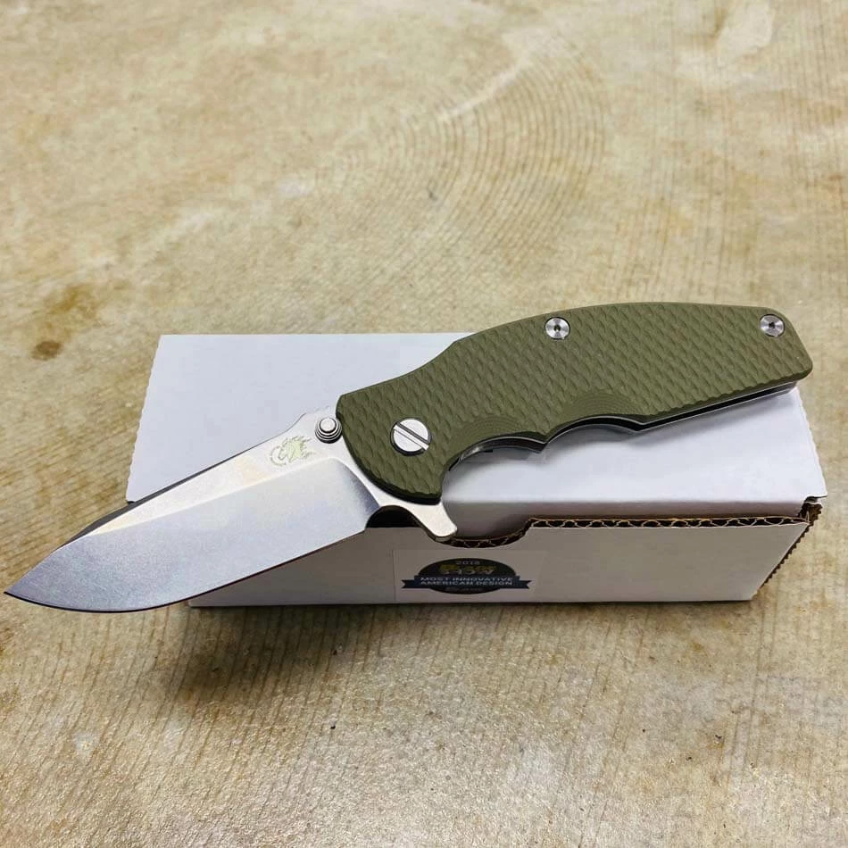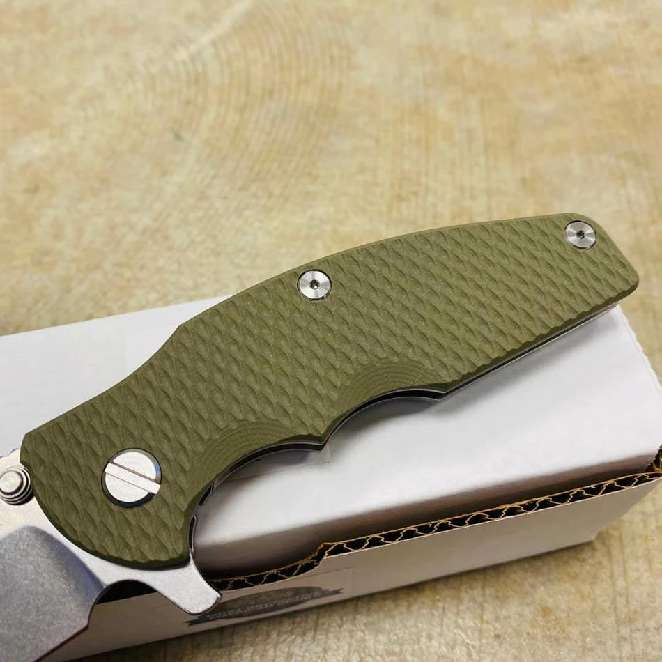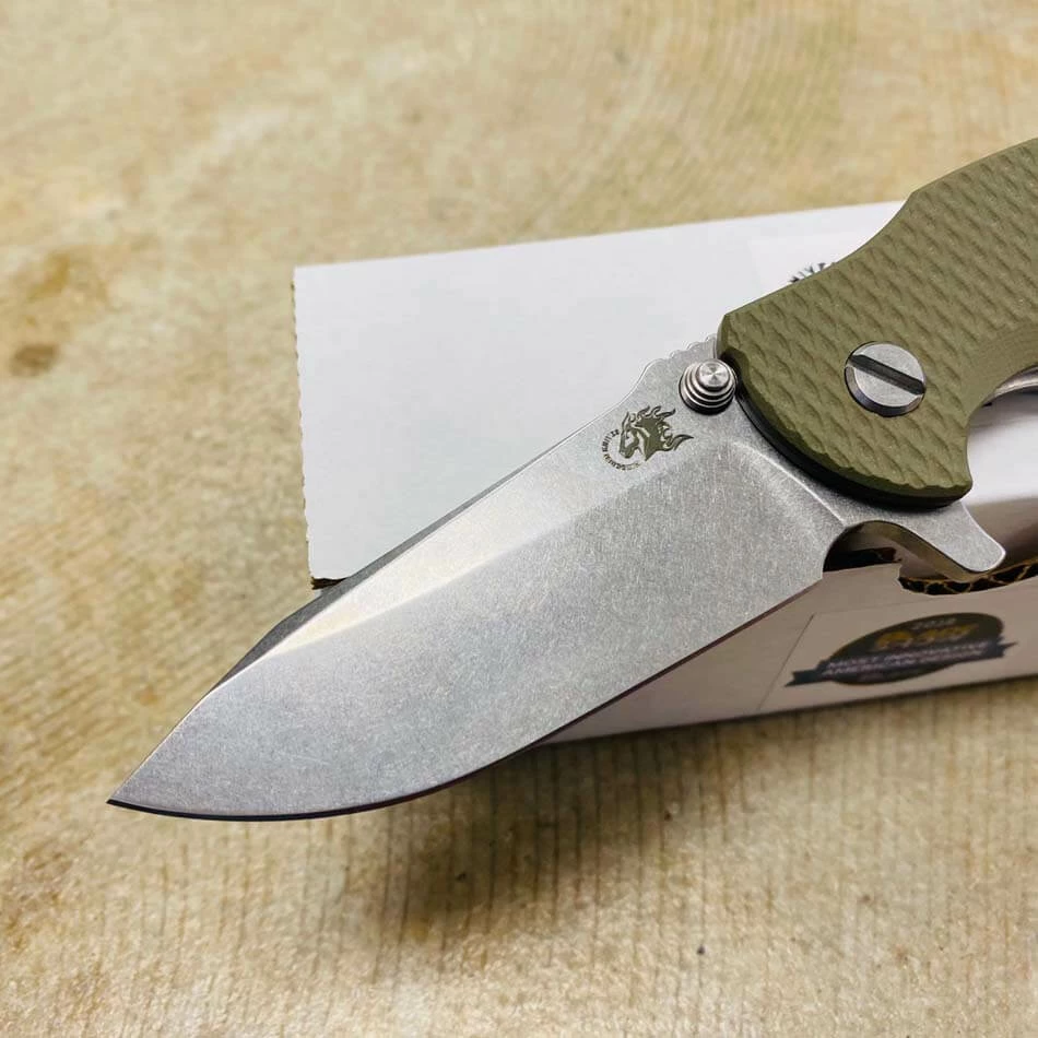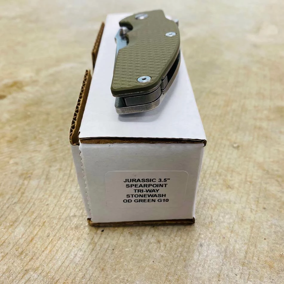 The frame drops towards the blade giving perfect spot to place your thumb, and the blade jimping helps keep your hand from slipping and give more grip for finer work. Two finger grooves rear of the flipper tab add even more comfort and grip. Overall, the natural hand position on the Jurassic almost feels like the grip you get when choking up on an XM-18 3.5 inch without having to put your finger forward of the flipper.