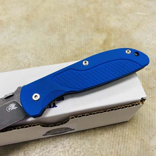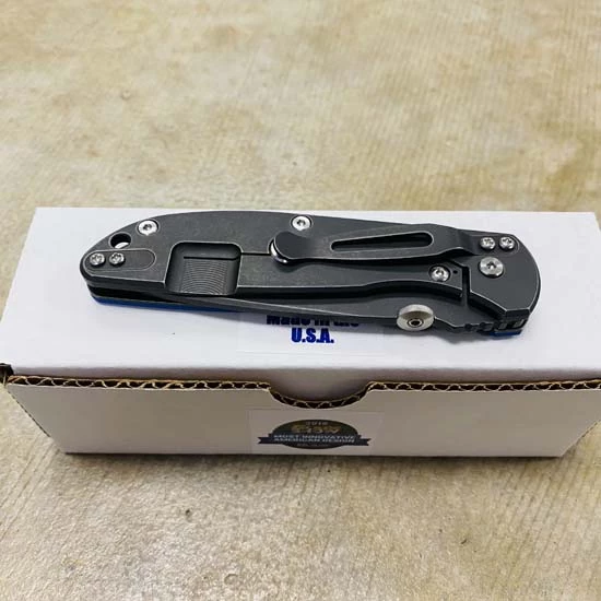 The Hinderer Firetac is a high performance production knife based on the classic Rick Hinderer custom. This model sports a blue G-10 handle and a DLC coated recurve blade. The G-10 has a machine textured belly and index contouring for a superior grip. A tumbled titanium frame lock provides necessary stability with a stainless steel insert for secure blade lock up. A reversible tip-up or tip-down pocket clip finishes off this solid Hinderer design.