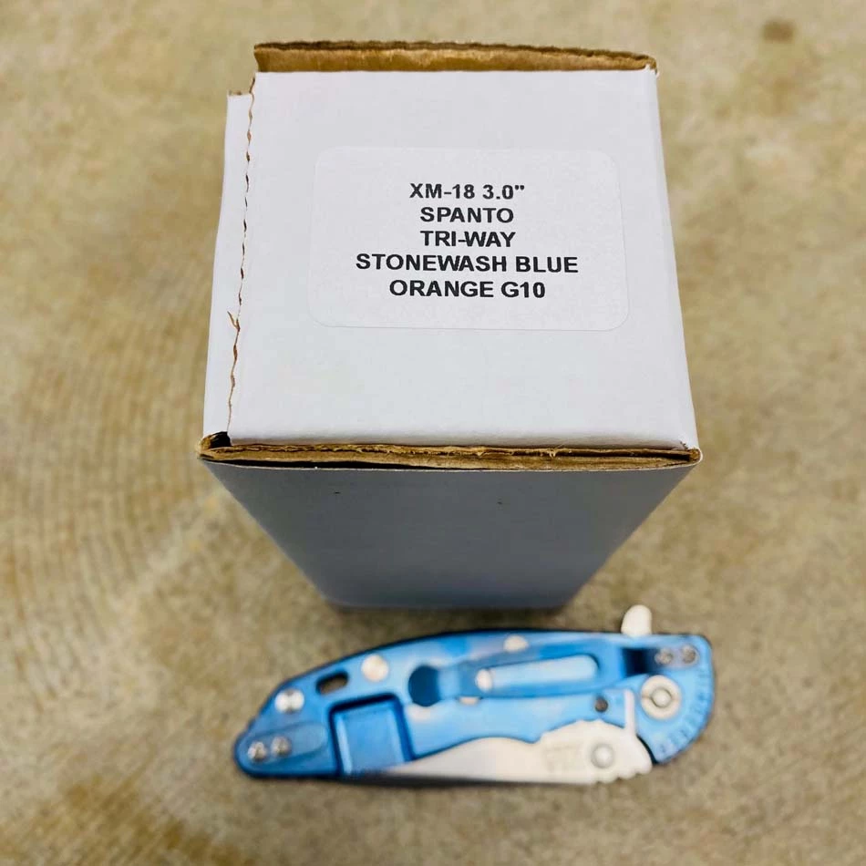 Be the first to review “Rick Hinderer XM-18 3.0″ Spanto, Tri-Way, STONEWASH BLUE, Orange G10 Folding Knife” Cancel reply