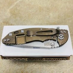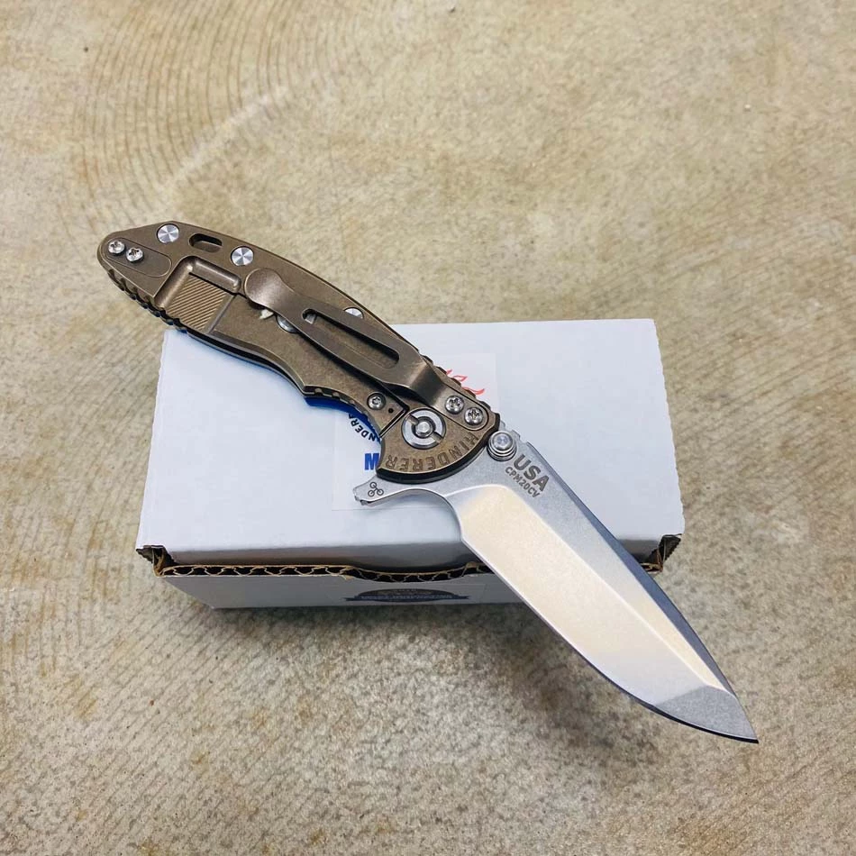 Rick Hinderer XM-18 3.5″ Slicer Tri-Way Battle Bronze Finish OD Green G10 Working Finish Blade Knife