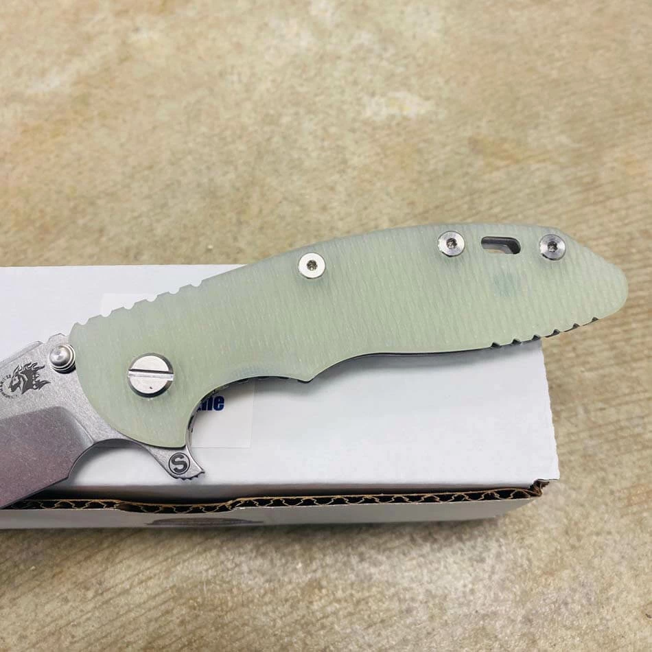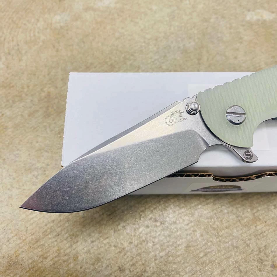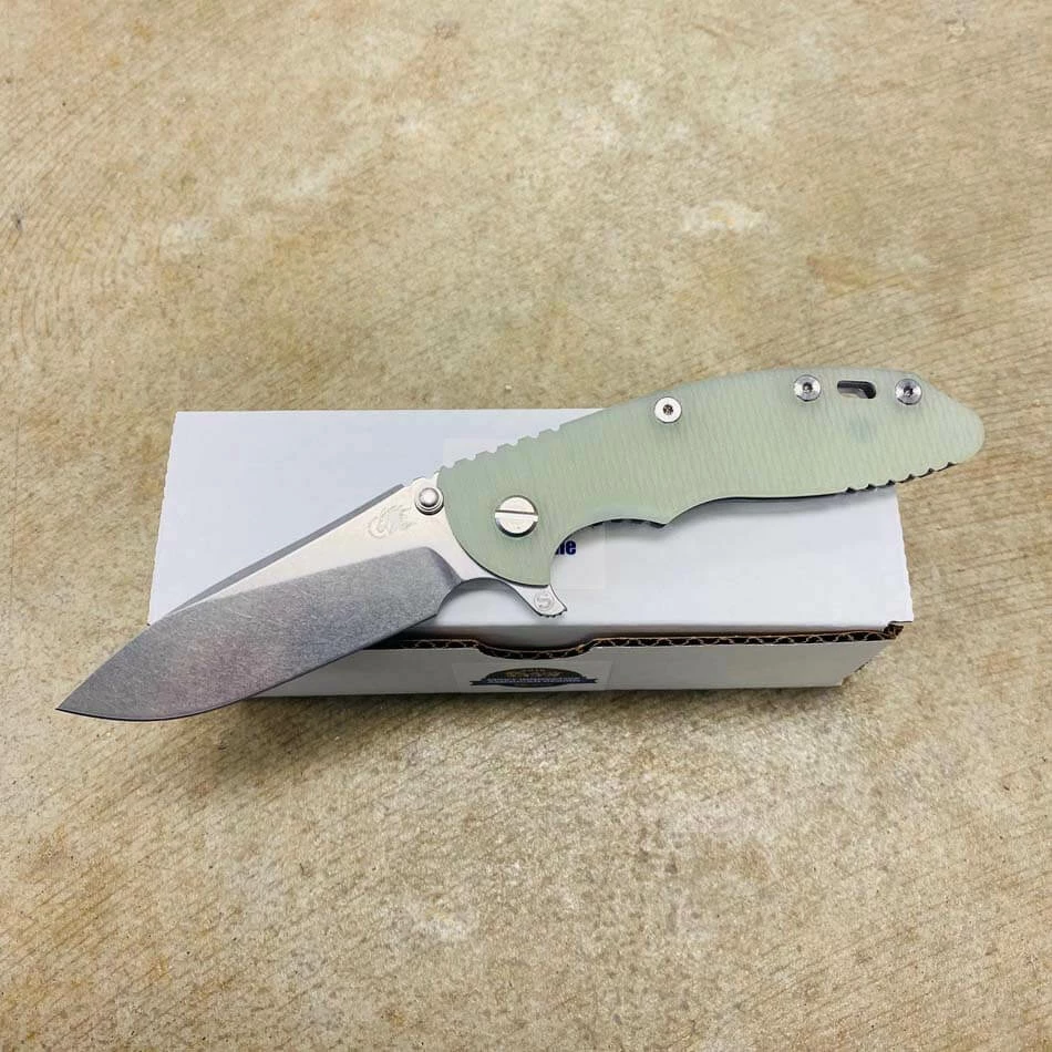 Rick Hinderer’s design intent for the “Slicer Grind” blade grind was to address a need for a blade style that will not only have high strength built into the blade for heavy use cutting but also to have the ability to perform fine slicing chores better than other blade grinds and styles such as the spear point and drop point style of blades.