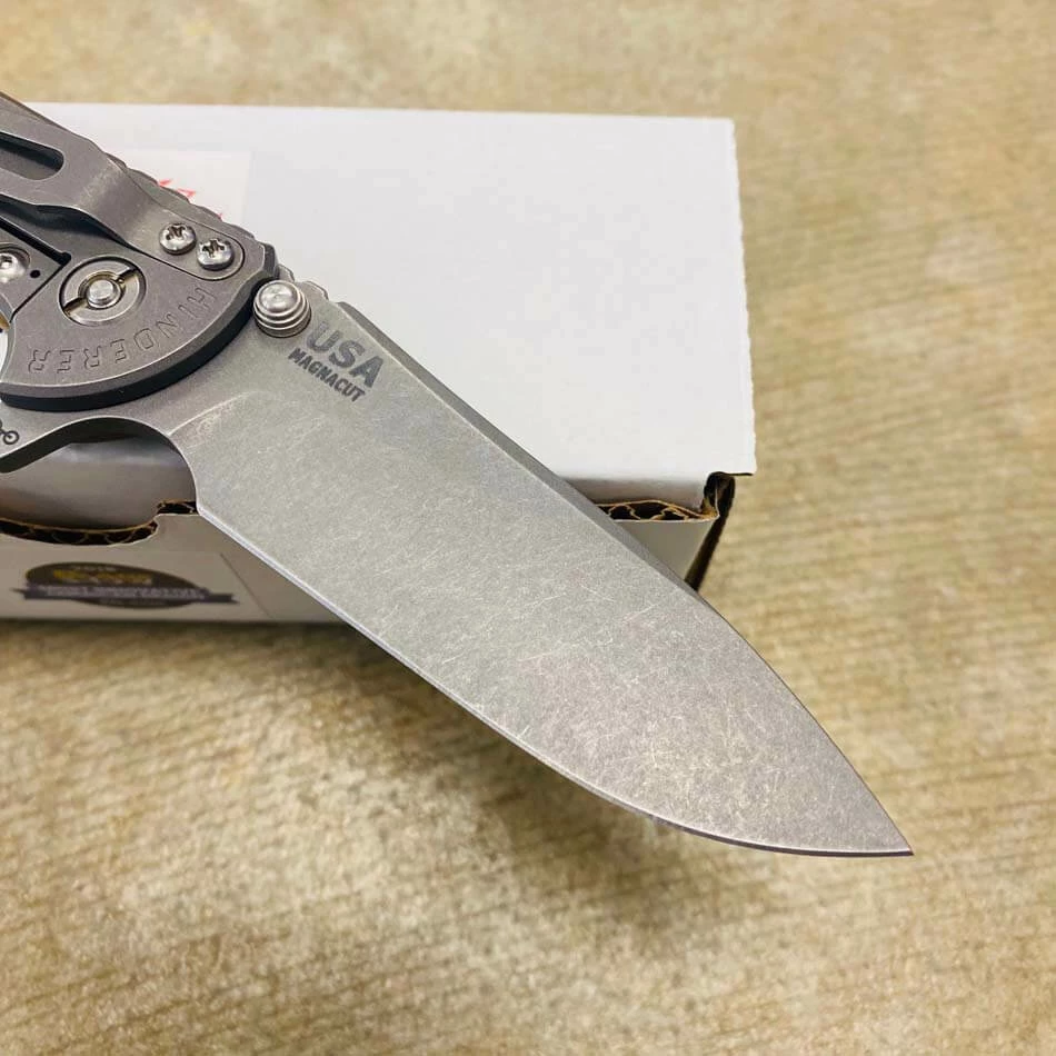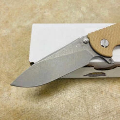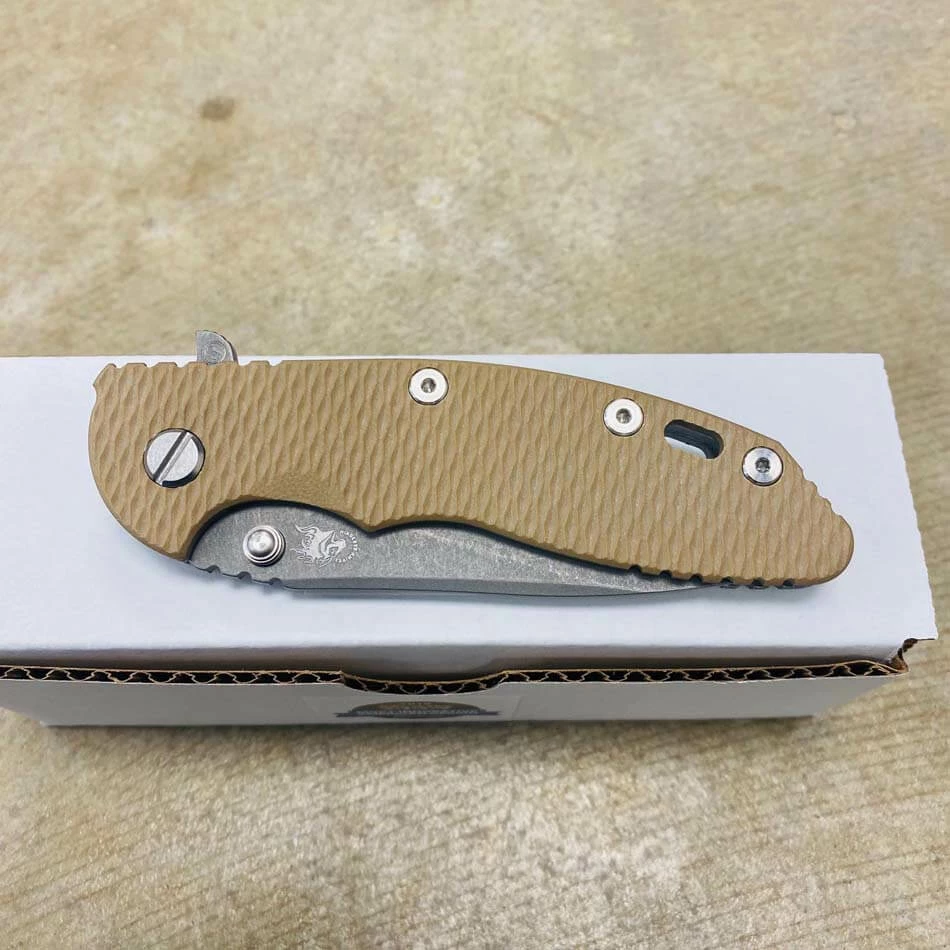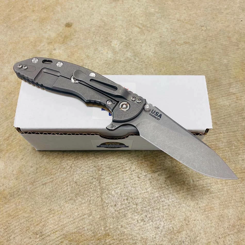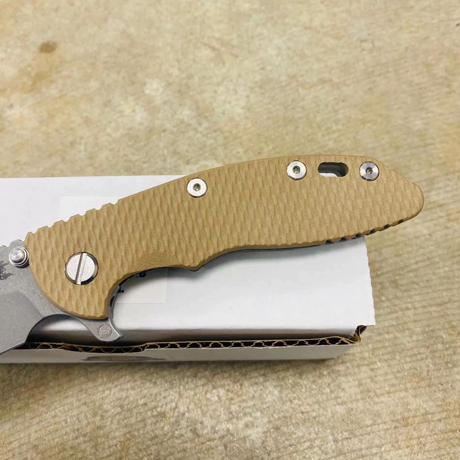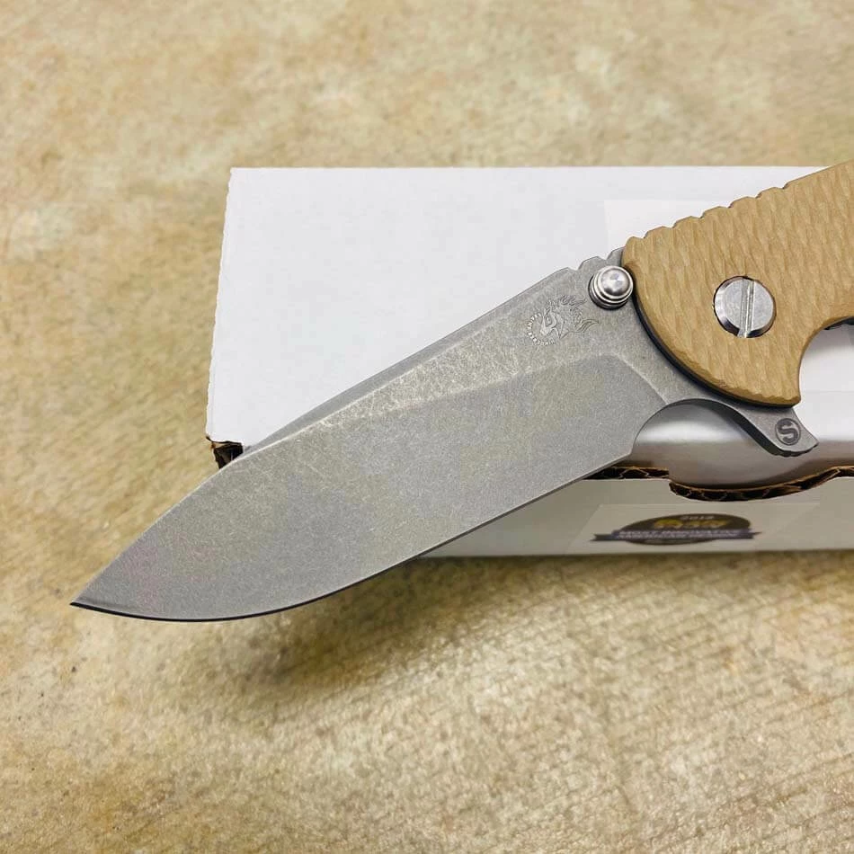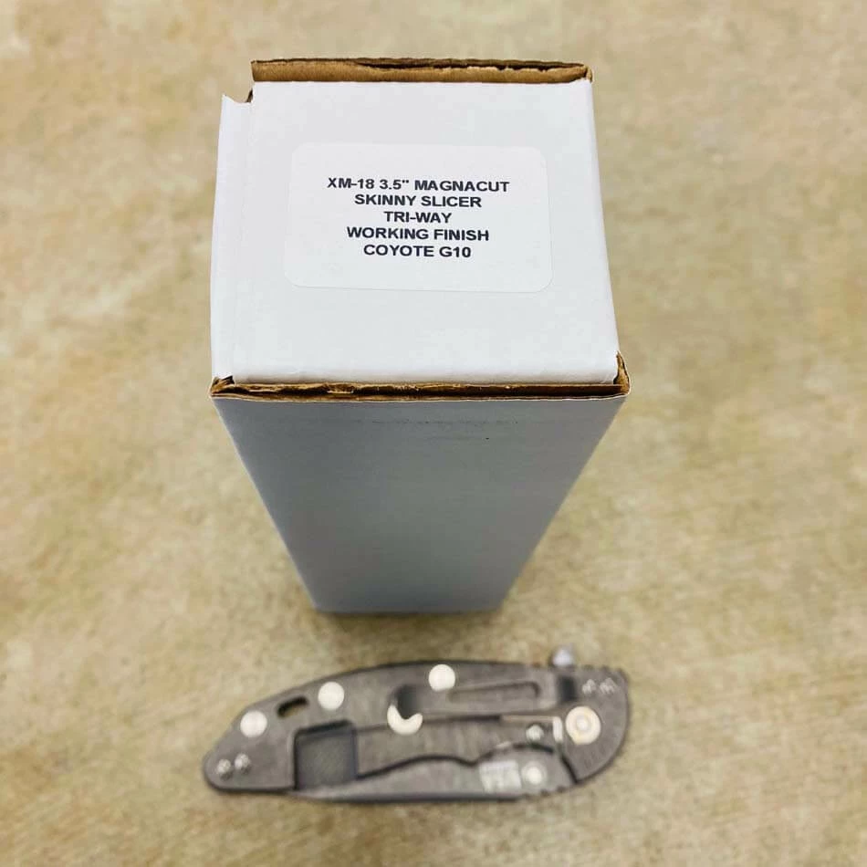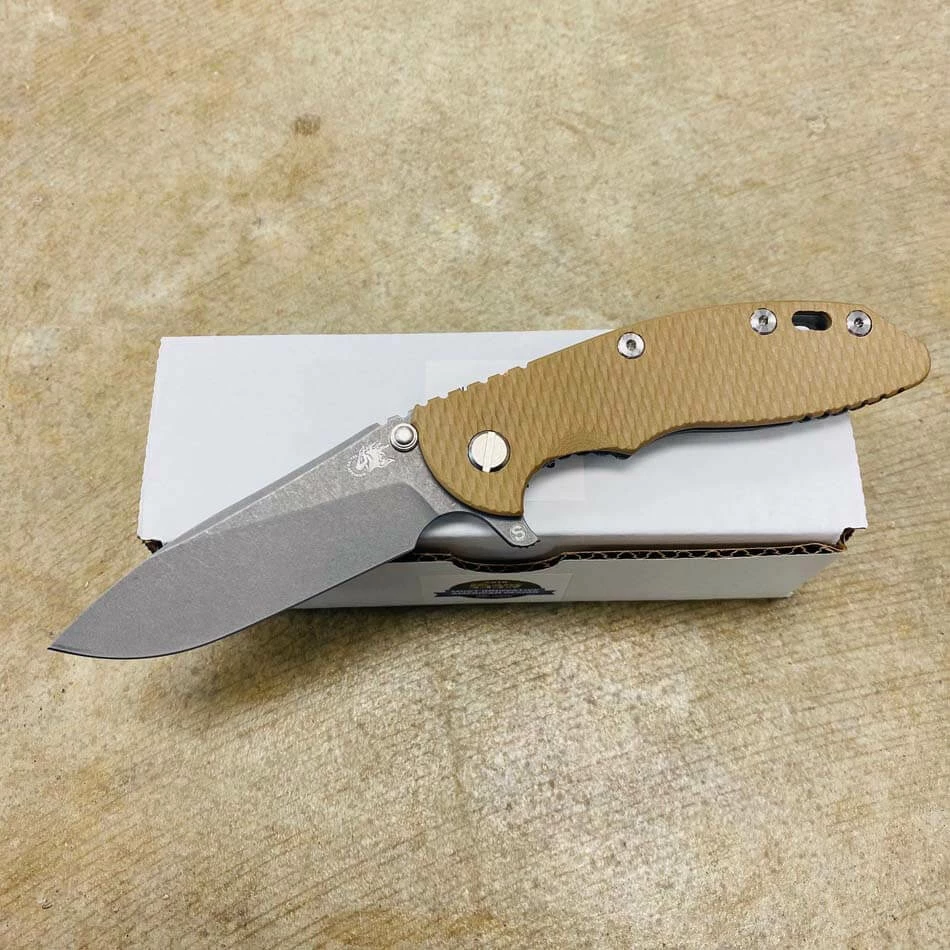Rick Hinderer’s design intent for the “Slicer Grind” blade grind was to address a need for a blade style that will not only have high strength built into the blade for heavy use cutting but also to have the ability to perform fine slicing chores better than other blade grinds and styles such as the spear point and drop point style of blades.