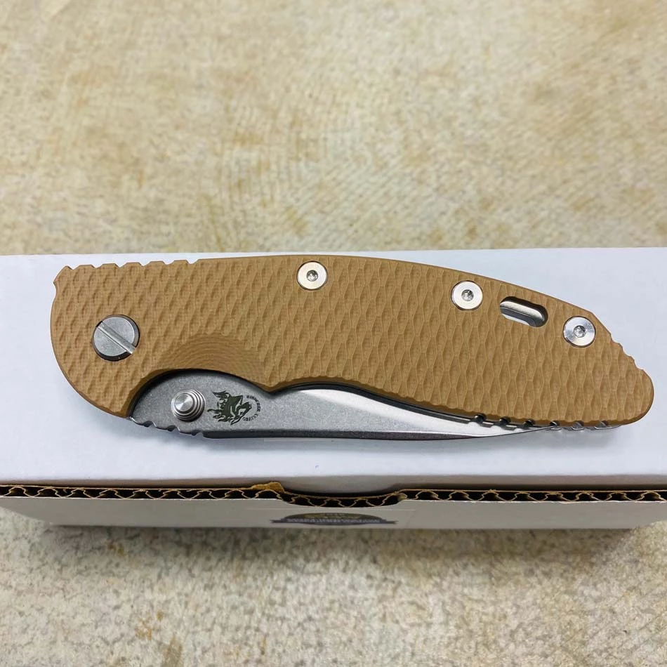 The XM folder handle shape is designed to be very ergonomic and comfortable in a wide variety of user positions. Not everyone’s hands are the same size, and also grip varies greatly, so the ergonomic handles design is great fit for all users. The textured pattern used on the handle scale is extremely grippy but does not ‘bite’ the hand during use. The 3D texture is designed to flow liquids (such as sweat, oils, blood, etc.) away from your skin and into the valleys of the texture.