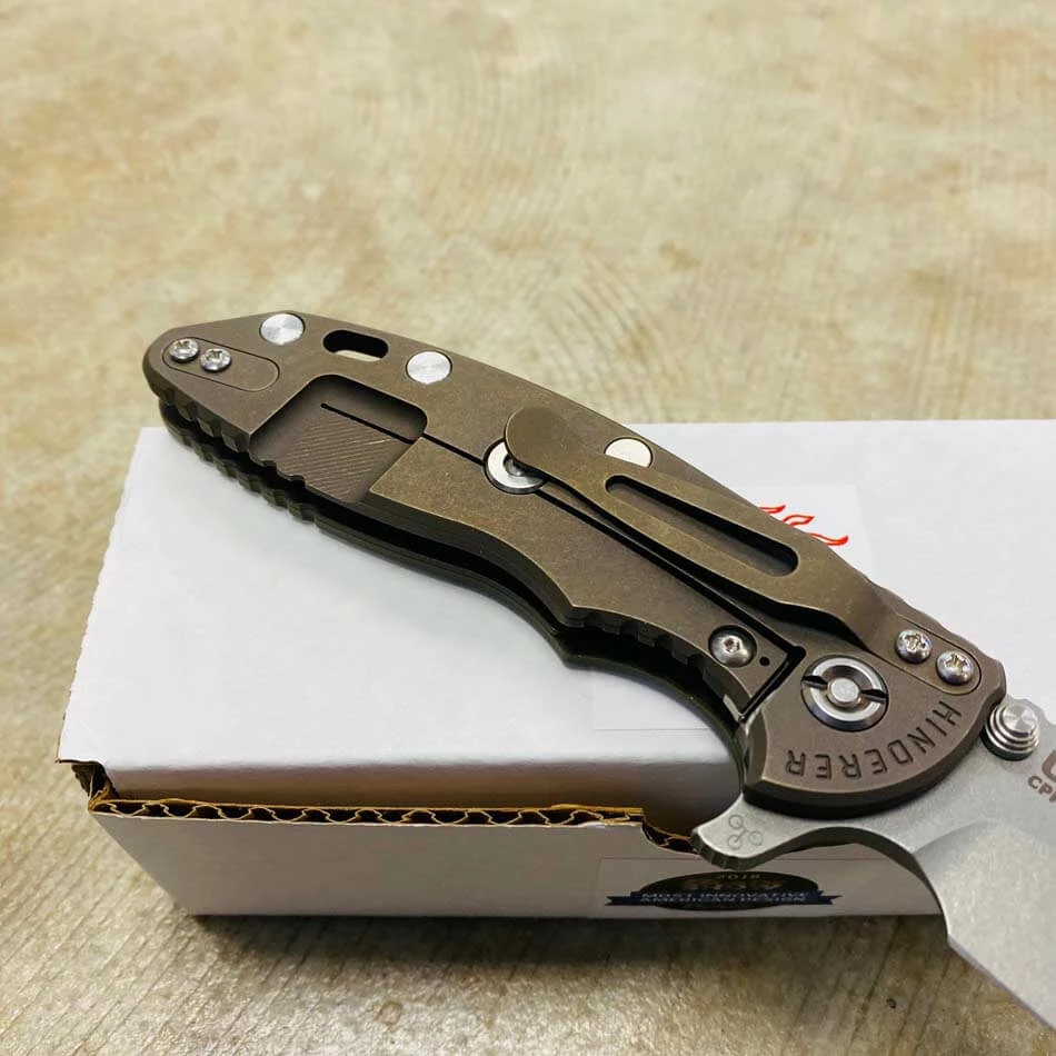 The XM Series CNC flat ground Spanto blade is the best of both worlds offering maximum cutting potential in a blade that has a durable tip for prying; the blade thickness on a 3.5″ XM-18 is a full .165″ retaining its thickness right out to the tip. The oversized choil permits choking up on the blade for more precise work. The blade locks up on a solid ¼ in diameter Thumb stud which is press fitted into the blade. This makes for a very strong lockup as there is no loosening of the thumb stud which can happen with two piece designs. The fact that the thumb stud locks up against the frame adds an incredible amount of strength to the sideways torque of the blade as the sideways stresses are being stopped by the whole handle side, thus relieving the stress that would normally be put on the pivot.