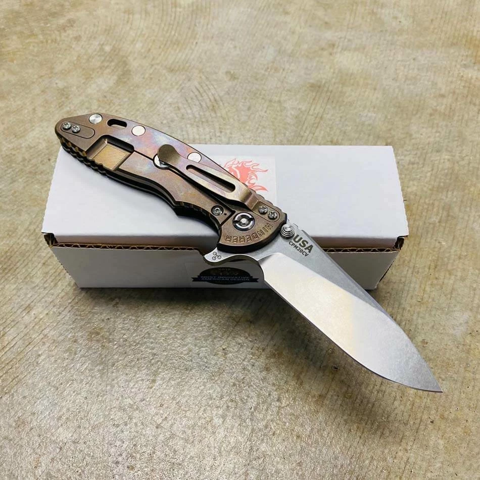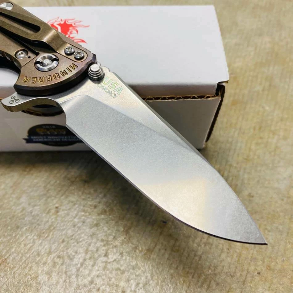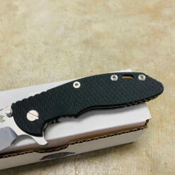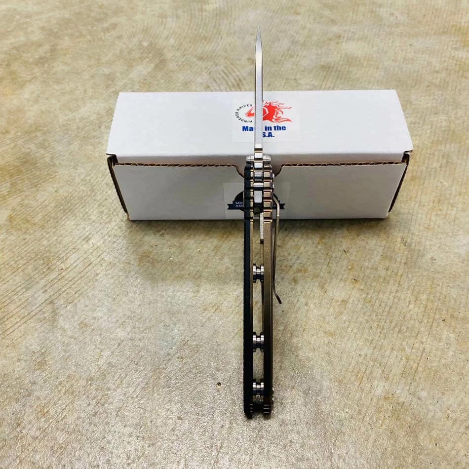 The XM Series CNC flat ground Spanto blade is the best of both worlds offering maximum cutting potential in a blade that has a durable tip for prying; the blade thickness on a 3.5″ XM-18 is a full .165″ retaining its thickness right out to the tip. The oversized choil permits choking up on the blade for more precise work. The blade locks up on a solid ¼ in diameter Thumb stud which is press fitted into the blade. This makes for a very strong lockup as there is no loosening of the thumb stud which can happen with two piece designs. The fact that the thumb stud locks up against the frame adds an incredible amount of strength to the sideways torque of the blade as the sideways stresses are being stopped by the whole handle side, thus relieving the stress that would normally be put on the pivot.