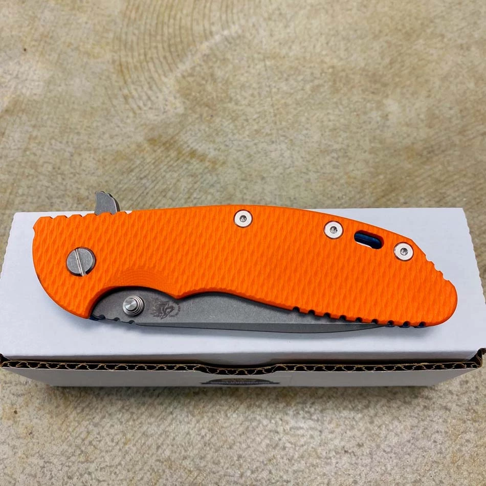The XM folder handle shape is designed to be very ergonomic and comfortable in a wide variety of user positions. Not everyone’s hands are the same size, and also grip varies greatly, so the ergonomic handles design is great fit for all users. The textured pattern used on the handle scale is extremely grippy but does not ‘bite’ the hand during use. The 3D texture is designed to flow liquids (such as sweat, oils, blood, etc.) away from your skin and into the valleys of the texture.
