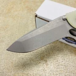 The XM Series CNC flat ground Spanto blade is the best of both worlds offering maximum cutting potential in a blade that has a durable tip for prying; the blade thickness on a 4.0″ XM-24 is a full .165″ retaining its thickness right out to the tip. The oversized choil permits choking up on the blade for more precise work. The blade locks up on a solid 1/4 in diameter Thumb stud which is press fitted into the blade. This makes for a very strong lockup as there is no loosening of the thumb stud which can happen with two piece designs. The fact that the thumb stud locks up against the frame adds an incredible amount of strength to the sideways torque of the blade as the sideways stresses are being stopped by the whole handle side, thus relieving the stress that would normally be put on the pivot.