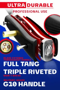 - Full tang – maximum robustness. This knife is built to last a lifetime.