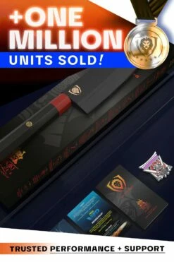 The Ronin Series exquisite ‘Liquid Kusari’ finish reduces drag and minimizes stuck on food. The super-steel core possesses extra high carbon levels, allowing for scalpel-like sharpness with exceptionally long lasting edge retention. Each knife is hand-finished in the Honbazuke 3-step method. Scalpel-like sharpness at staggering 8 to 12 degrees. Face any culinary challenge with enhanced blade durability. Beautifully engraved into the blade near the bolster is the Dalstrong lionhead insignia for further refinement.