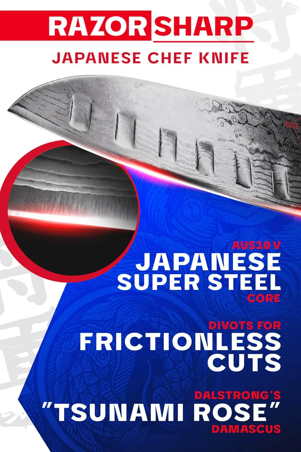 - Featuring Dalstrong’s exquisite Shogun Series Tsunami Rose blade pattern, for striking, stand out beauty.