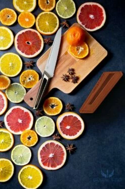 - Includes a hand crafted Acacia wood magnetic sheath to hold the knife securely in place. A smart and stylish way to protect your blades and fingers