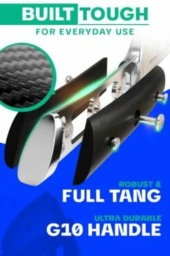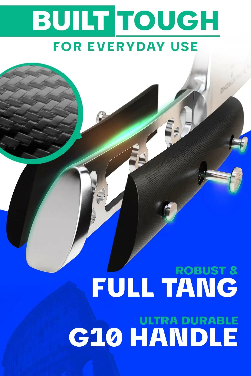 - Premium quality laminated G10 Garolite handles for superior strength, refinement, and beauty.