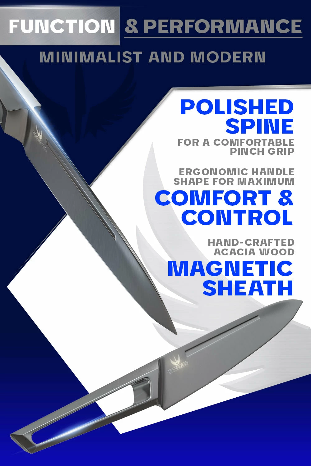 - Includes a hand crafted Acacia wood magnetic sheath to hold the knife securely in place. A smart and stylish way to protect your blades and fingers