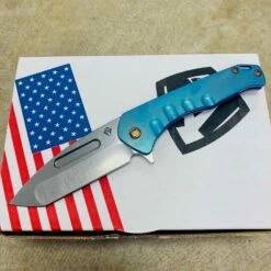 Medford Praetorian Swift Automatic 3.75″ Drop Point Tumbled Blade Blue Handles Knife Serial 205-506
