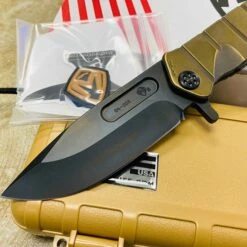 Medford USMC Fighter Flipper 4.25″ S35VN PVD Blade, Bronze FACED ANO Handles Knife 04-002