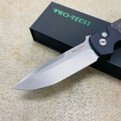 Protech LG303 D2 Les George Rockeye 3.4″ CPM-D2 DLC Black Blade Black Handles Automatic Knife