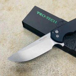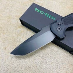 Protech MX101 Mordax Solid Black Handle 3.25 Stonewash Magnacut Blade Plain Edge Folding Knife