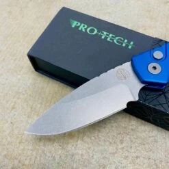Protech Runt 5 R5101-BLUE Smooth Blue Handle 1.9″ Stonewash 20CV Wharncliffe Blade Auto Knife